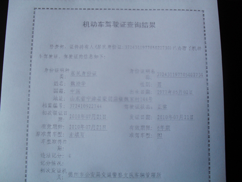 2011年3月19日10時許,寧津交警大隊秩序中隊中隊長劉輝帶領民警在縣城煙草路口執勤時,發現一輛紅色牌照為魯N93317、魯NW229(掛車)解放型重型半掛牽引車實施闖禁行交通違法行為,執勤民警立即將其攔下進行檢查,在檢查駕駛人魏某機動車駕駛·行駛證皮夾,查看駕駛人魏某機動車駕駛證時,發現駕駛人魏某駕駛證證號和魏某身份證證號不相符,民警隨將駕駛人魏某帶到交警大隊秩序科進行詢問,經過調查,查明駕駛人魏某(身份證號:372431197705022730)的證號為372431197501082715的駕駛證為偽造駕駛證,是魏某通過辦理假證件渠道,花了200元錢偽造套用了他人的駕駛證,現交警將魏某偽造的駕駛證予以收繳,車輛暫扣,并依法追究駕駛人魏某的法律責任。