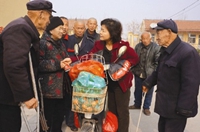 正是從這天開始,每月1日成了于淑榮和老人們固定相約的日子。每到這天,于淑榮都會到敬老院,和老人說說話,給老人們每人10塊錢,給老人們買些吃的,夏天送西瓜、冬天有蘋果和香蕉,日常的襪子、襯衫、棉大衣之類的衣服總會按照相應時節送來。過年過節她還會給老人們“加餐”:中秋節給每個老人20塊錢,過年給每個老人50塊錢,糖、花生、瓜子、牛奶,讓老人們多享受一些。