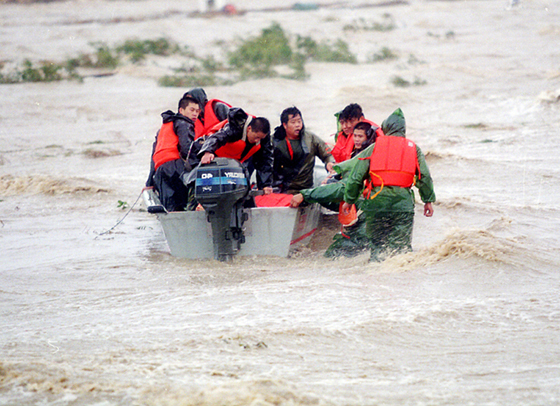 這時(shí)又接到報(bào)告,還有人被困在里面。海潮已漲了四米多,海面上騰起一個(gè)個(gè)嚇人的開花浪,形勢(shì)萬(wàn)分危急,每一秒鐘都人命關(guān)天!這時(shí)候,再想趟著海水去救人已經(jīng)不可能了,駐濰部隊(duì)的戰(zhàn)士們運(yùn)來(lái)的沖鋒舟,也從未在風(fēng)力超過(guò)8級(jí)的海水里使用過(guò),在11級(jí)臺(tái)風(fēng)和暴雨呼嘯聲中,他穿上救生衣就和一名駕駛沖鋒舟的戰(zhàn)士又一次下了海。