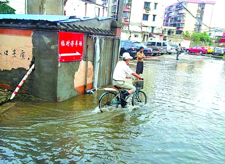 大爺說,前天因“海葵”來襲,臨時(shí)停車場關(guān)閉。昨天清晨6時(shí)半,他騎著自行車來開門。“雖然臺風(fēng)已過,但從停車場到外面彩虹南路積水嚴(yán)重,最深處已經(jīng)淹到這里。”大爺用手在小腿上比劃。