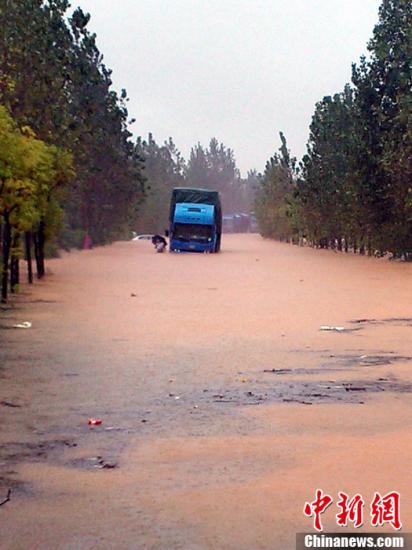 受臺風(fēng)“海葵”影響,江西省景德鎮(zhèn)市遭遇強降雨。圖為206國道景德鎮(zhèn)昌江區(qū)路段被淹,貨車司機棄車在齊腰深的水中艱難前行。黃迪鶯 攝
