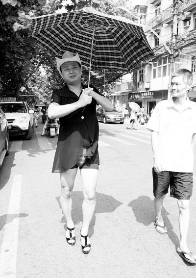 昨天上午,當(dāng)記者在司門口偶遇李明時,他正踩著近12厘米的高跟鞋,著裝也十分女性化。這樣的裝扮,讓過往行人紛紛向他行起了“注目禮”。