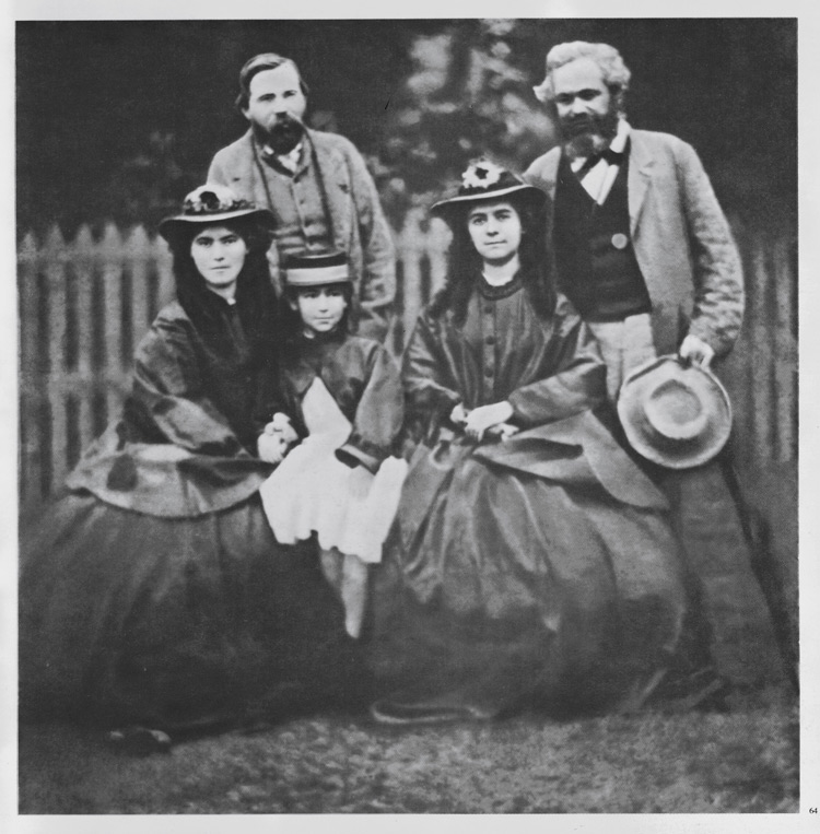 馬克思、恩格斯和馬克思的三個(gè)女兒小燕妮、勞拉和愛琳娜(1864年5月)