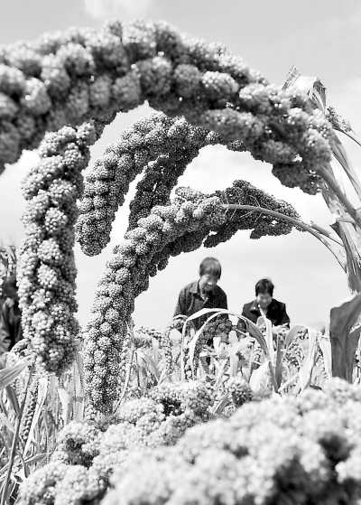 2011年全國(guó)糧食總產(chǎn)量11424億斤,比2010年增產(chǎn)495億斤,增長(zhǎng)4.5%。圖為山東省沂源縣南魯山鎮(zhèn)陳家山村的農(nóng)民在采收成熟的谷子。(新華社發(fā))