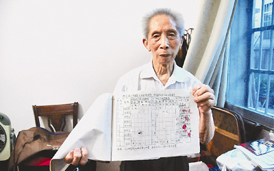 1942年農歷八月二十七,鄭宜棟一生中刻骨銘心的日子。當天,17歲的鄭宜棟和父親、哥哥一起在家里堆稻草,當時的保長、甲長和幾個鄉丁沖到他家里強行“派夫”,將鄭宜棟捆綁起來準備拉走,父親和哥哥沖過去救人,竟然被鄉丁用槍直接打死了。“那幾天亂糟糟的,家里沒有人,鄉親們存放的油料被小偷偷光了,現金和其他能拿走的東西都被偷完了。”鄭宜棟老人痛苦地說。