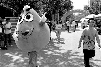 ②卡通人迎接新生,給校園里增添了不少快樂的氣氛。