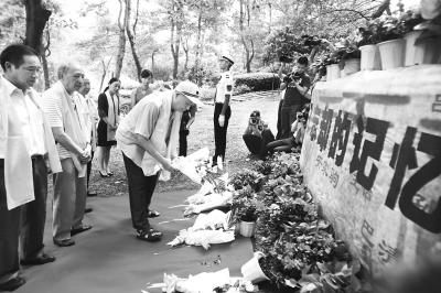 [提要] 上午9點半,記者在現場看到,烈士墓被修葺一新,上書“為了忘卻的紀念”幾個大字,12位陣亡將士的名字被刻在大理石上。授牌儀式現場,記者見到了抗戰空軍烈士陳懷民的侄子陳德、抗戰空軍將士周庭芳之子周志翔。