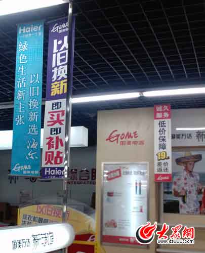 在泉城路另一家家電賣場,記者見到了類似的情況,整個賣場以舊換新的海報隨處可見,而且也是從未撤掉,銷售人員告訴記者,即便是6月1日至3日來買家電的顧客亦可享受以舊換新政策。