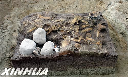 山東諸城恐龍化石發(fā)掘點驚現(xiàn)“龍立方”