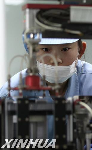 7月5日,山東濰坊一家臺灣獨(dú)資太陽能硅片制造企業(yè)車間內(nèi),自動檢測設(shè)備正在對多晶硅片進(jìn)行檢測。