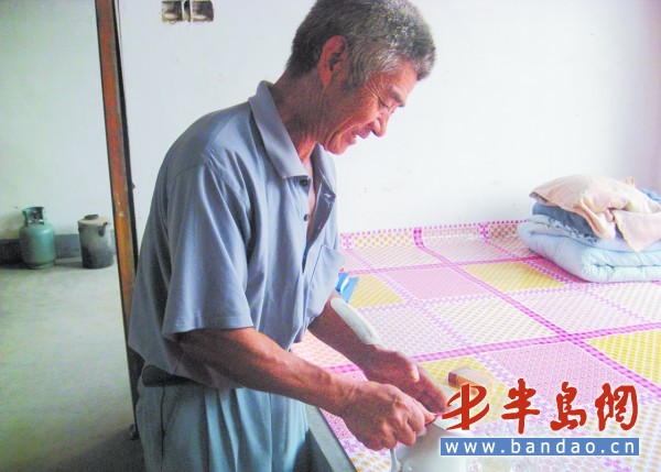 8月16日,記者來到膠南市張家樓鎮大泥溝頭村村民六十多歲的王芝積家中看到,他的四間瓦房基本上蓋好了,兩個1米多高的小櫥子,三把椅子,就是王芝積家中僅有的家具。櫥子上放著一些碗筷、鍋和破舊的燃氣灶。“這些都是鄰居們送給我用的,我沒錢去買這些 !蓖踔シe告訴記者,這幾扇屋門也是別人送給他的,雖然有點舊,他已經十分滿足!拔野沿i賣了幾千元,再加上去年賣糧食的一些錢,東拼西湊了5萬元,蓋起了這四間瓦房!蓖踔シe從小家里很窮,住進新房子一直是他的心愿。王芝積右腿有些殘疾,走起路來有些跛。“這是先天性關節炎落下的病根,小時候我的腿根本伸不直,后來治好后,腿還是有些瘸。”王芝積告訴記者。