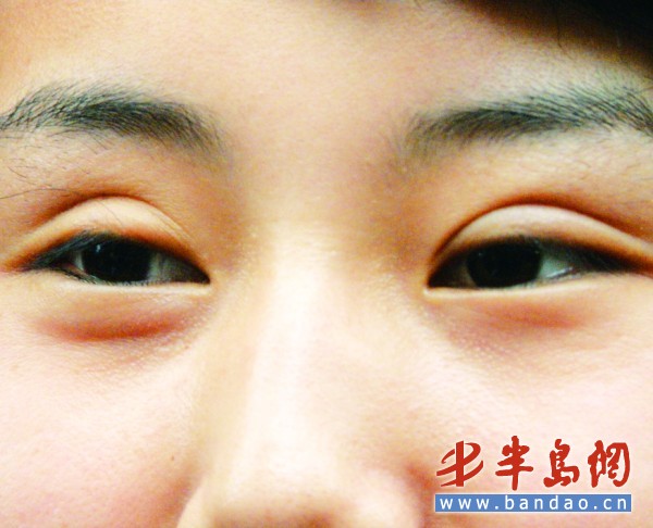 記者注意到,夏女士的眼睛確實有腫塊,雙眼呈三角狀,尤以右眼比較嚴(yán)重。她告訴記者,這場失敗的手術(shù)給她的生活帶來了極大的影響。“一年的時間里,我不敢出門,也不想見朋友。有些人還埋汰我,說我眼睛和手指頭一樣寬。”夏女士說。