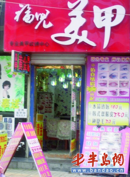 8月27日下午,記者陪同夏女士一起來到了這家美甲店。記者注意到,這家美甲店的經(jīng)營范圍并不局限于美甲,在門口的廣告牌上還寫著“雙眼皮”“隆鼻”“瘦臉”“祛皺”等字樣。當(dāng)記者對這家店的資質(zhì)表示懷疑時,店老板告訴記者他們是有資質(zhì)的。可記者再進一步追問資質(zhì)授予單位時,對方卻回避了記者的提問,說:“現(xiàn)在討論這個問題已經(jīng)沒有意義了。”隨后,經(jīng)過協(xié)商,店老板答應(yīng)為夏女士找正規(guī)的美容機構(gòu)對其眼部進行修復(fù),所需費用全部由店方負責(zé)。