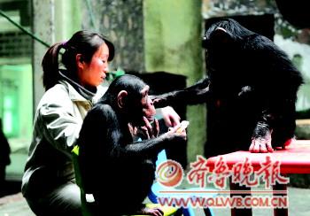 “現在不讓它們洗手了,我們用熱毛巾給它們擦。”楊瑩表示,由于天氣較干,黑猩猩洗手后容易出現裂口,即使抹上潤膚油也不管用。每次開飯前,飼養員都要用熱毛巾給它們把手腳擦干凈。