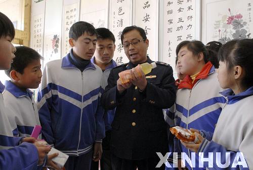 12月1日,工商執法人員向學生傳授食品識假辨劣知識。新華社記者范長國攝