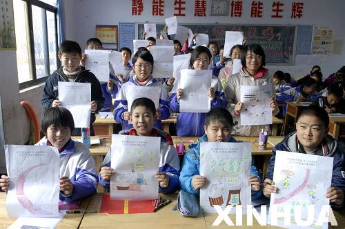 12月1日,學生在展示自己繪制的“我心中的食品安全”作品。新華社記者范長國攝