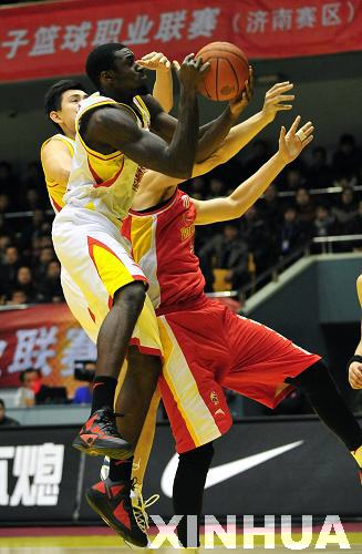 12月14日,山東黃金隊球員亨特(左)在比賽中上籃。當日,在2011-2012賽季中國男子籃球職業聯賽(CBA)第11輪比賽中,山東黃金隊主場以112比87戰勝八一雙鹿隊。