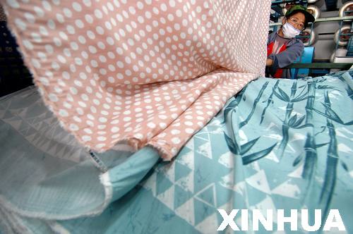 12月13日,在威海麗浦維爾印染公司,工人正在對花布進行柔軟拉幅操作。新華社記者 郭緒雷 攝