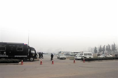 昨天上午8時(shí),膠州法院四周被“重兵”把守,法院四周全都拉上了警戒線(xiàn),禁止無(wú)關(guān)人員靠前,十余輛警車(chē)和150名警力參與執(zhí)勤,維持法院及周邊正常秩序,膠州法院兩側(cè)主要道路上,也實(shí)行全天候交通管