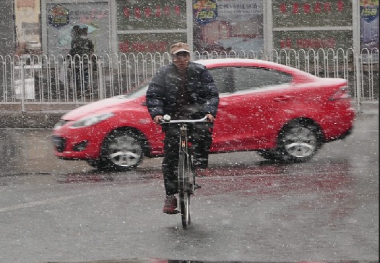 青島市區(qū)迎來(lái)龍年首雪(尚品 攝)