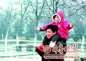 12日下午,濟(jì)寧城區(qū)一位市民帶著孩子在雪中玩耍。當(dāng)日下午,濟(jì)寧市迎來(lái)立春后的首場(chǎng)降雪。 本報(bào)記者 李巖松 攝