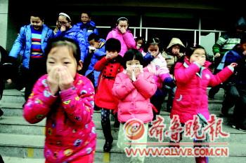 12日,在濰坊市北海學(xué)校,學(xué)生在老師的指揮下迅速撤離教學(xué)樓。當(dāng)日是濰坊市中小學(xué)寒假后報到的第一天,北海學(xué)校組織全校的師生進行逃生安全演練,學(xué)校老師介紹,通過安全演練,讓師生掌握相應(yīng)的安全防護和安全自救的知識。