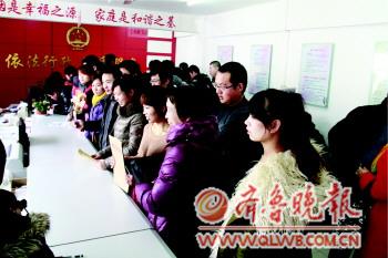 [提要] 2月14日上午,在東昌府區民政局婚姻登記處,擠滿了前來登記的新人。當天是情人節,不少新人選擇在這一天結婚登記,僅東昌府區民政局婚姻登記處就有180對新人扎堆領證。