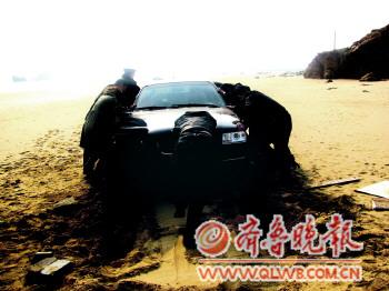 [提要] 20日,市民陳先生一家從菏澤曹縣開(kāi)車(chē)到黃島銀沙灘來(lái)游玩,下午4時(shí)10分,陳先生一家準(zhǔn)備離開(kāi)時(shí)才發(fā)現(xiàn)轎車(chē)陷在沙灘上,便撥打110求助。薛家島派出所民警趕到現(xiàn)場(chǎng)后,成功將車(chē)推出沙灘。