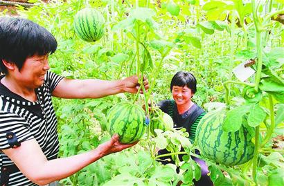 [提要] 昨日,果農(nóng)在歷城區(qū)唐王鎮(zhèn)西王村宏園翔新奇百果觀光園喜摘“足球西瓜”。時(shí)下,唐王鎮(zhèn)的特色西瓜相繼成熟。據(jù)介紹,這種“密童”無(wú)籽西瓜皮薄甘甜,不怕碰不怕摔,適合長(zhǎng)途運(yùn)輸,耐儲(chǔ)存,價(jià)格是普通西瓜的 7倍。