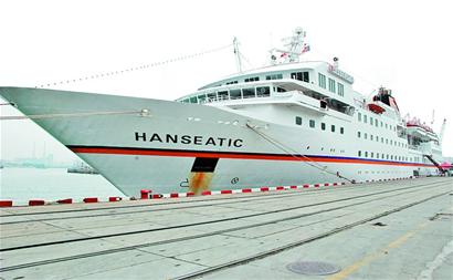 [提要] 昨日,巴哈馬籍國際豪華郵輪“漢薩蒂克”號抵靠青島港。該郵輪船體具有破冰能力,是極少數(shù)能夠運營南極、北極探險航線的豪華郵輪之一。這是該輪繼2009年之后第二次來到青島。