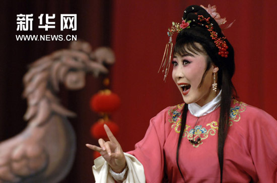 在煙臺大劇院,呂劇演員在表演《三鳳求凰》(7月6日攝)。