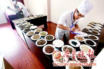“開始!”考官發(fā)出指令的同時(shí)也按下計(jì)時(shí)表,現(xiàn)場(chǎng)的2名選手分別在中醫(yī)藥鑒別區(qū)和調(diào)劑區(qū)忙碌起來。經(jīng)過眼看、手摸、鼻聞等方法,一位選手僅用了6分鐘,就把眼前的50味中藥材辨識(shí)出來。