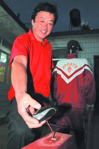 看著機器人在郭恩成的指揮下左右轉向、前進后退,路人都問這是怎么操控的,郭恩成便向眾人展示了他的“秘密武器”。原來,他右手握著一個鼠標,鼠標的左鍵和右鍵分別能控制機器人左轉和右轉,鼠標上的滾輪后轉就能使機器人“倒車”,他腳下有個油門,踩下油門機器人就走,松開油門機器人就停下。
