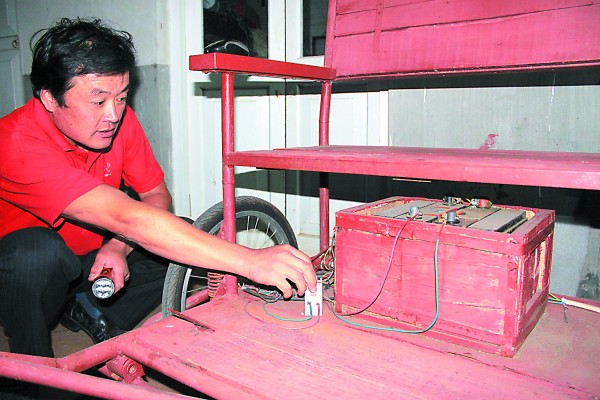 雖然機器人不是很完美,郭恩成還是很開心。他以前也聽說過拉車機器人,但聽說那些機器人腳底下用的是輪子,而他的這個機器人,實現了“真正意義上的行走”。郭恩成說,現在他用的蓄電池是電動三輪車電池,可以支持機器人走6個小時。