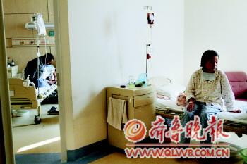 正值壯年的李瑞被查出患有肝癌、肝萎縮,他的妻子為了挽留住丈夫的生命,帶著丈夫從棗莊的農(nóng)村老家來(lái)到聊城市人民醫(yī)院求醫(yī)。得知肝移植能保住丈夫的生命,晏如華和公爹各捐獻(xiàn)一部分肝臟,移植到李瑞的身體內(nèi),演繹了親人間“同肝共苦”的感人真情。圖為,李瑞和他妻子兩人正在病房?jī)?nèi)輸液。 本報(bào)記者 李軍 攝