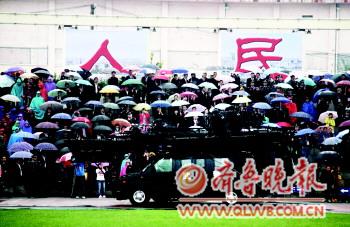 上午9點多,雨越下越大,在現場,來自市委政法委、市中級人民法院、市檢察院、市公安局等22個單位的24個徒步方隊和9個車輛方隊冒雨從觀眾席走過,氣勢宏大。受閱人員還演示了交通指揮手勢、擒拿術、刺殺、硬氣功、反恐作戰等重點訓練科目。雨水打濕了戰士們的衣服,更顯剛毅威武。