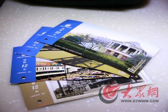 乘坐游777路公交車,游客們可以拿到印有濟南風景的明信片作為車票。記者 張帆 攝
