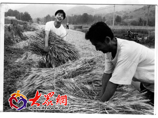 1999年在齊魯晚報實習的時候,在濟南近郊體驗收麥子。(徐延春 攝)