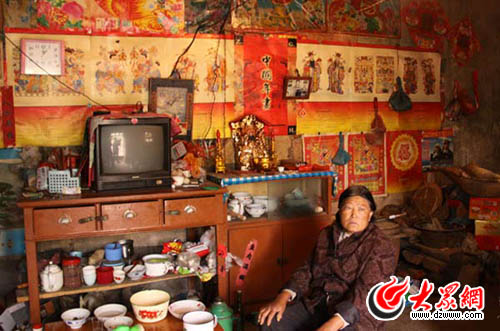 王艷的家在離夏蔚鎮(zhèn)駐地五六里遠(yuǎn)的一個(gè)小山村里,房子是在沂蒙山區(qū)都已很少見的土坯房,低矮破舊。王艷的爺爺說,房子已經(jīng)蓋了三十多年了,原先是茅草房,前幾年才湊錢把房頂?shù)拿┎莶鸬,換成了瓦。記者看到,房子的窗戶上沒有玻璃,而是釘著白色的塑料布,即使是白天,屋子間也非常陰暗,唯一的家電是一臺(tái)18英寸的黑白電視機(jī)。