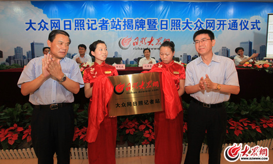 大眾網日照8月19日訊 (記者 曹亮 王磊)今天下午,大眾網日照記者站正式揭牌,日照大眾網正式上線開通。日照市委副書記、市長趙效為親筆為日照大眾網題詞:“網聚大眾力量,共建美好日照”。山東省委宣傳部副部長劉保聚,日照市委常委、宣傳部長毛繼春,大眾報業集團黨委常委、副總編輯郝克遠,日照市委宣傳部副部長孫正武,大眾日報日照站站長孫巍,大眾傳媒股份有限公司(大眾網)董事長、總經理林忠禮出席了揭牌暨開通儀式。大眾總編輯朱德泉主持開通儀式。
