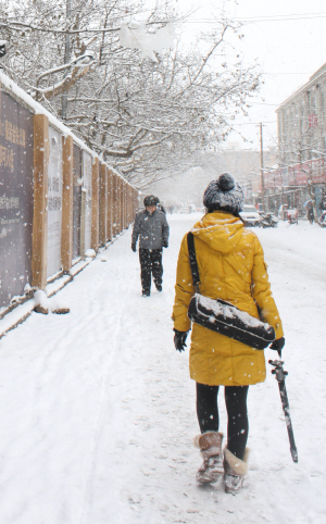 威海昨天普降大雪 干旱之后市民喜迎降雪