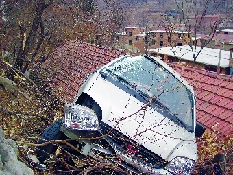 “轟隆一響,聲音非常大。”民房主人張富貴說,7日晚上8時許,他剛從市區下班回家,正和妻子坐在沙發上看電視,突然聽到外面傳來一聲巨響,墻皮、石塊紛紛往下落。“還以為是地震呢,剛倒了一杯水,沒來得及喝就趕緊向外跑。”張富貴的妻子王秀英告訴記者,1分鐘后,她和丈夫才驚奇地發現,屋頂上竟然有一輛車,“好像還有車輪子轉動的聲音。”