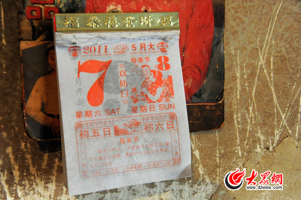 曹秀英家的日歷上寫著:母親節(注:這是兩天一頁的老式日歷)
