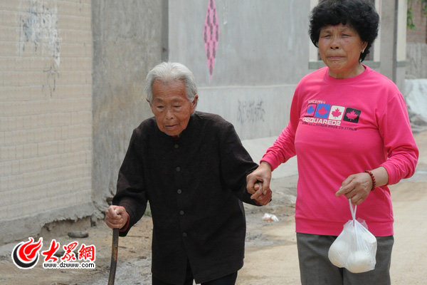 鄰居攙扶著買饅頭回來的曹秀英老人