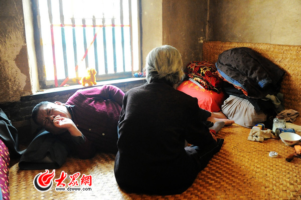 氣喘吁吁的曹秀英老人進屋后就坐上了炕,“我先歇歇,走那么幾步就出了一身汗”,說著把身上的外套脫了下來,接著又對德說:“你也熱吧,也給你脫下來”,便又給德脫起了外套。那一刻,陽光透過窗戶紙照進屋子,正好灑在母子倆的身上,而坐在窗邊的母子倆,頭發都是白的。在來之前,記者一直感覺曹秀英會是一個身體壯實的老太太,德也只是個癡癡的孩子,甚至有些忘記了他倆年齡的概念,直到看到母子倆都已是滿頭白發,特別是曹秀英已經步履蹣跚、行動遲緩,這才強烈地意識到,曹秀英已經是走過近一個世紀的老人了,而德也已經走過了半個多世紀。