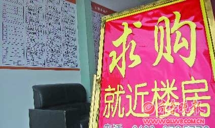 由于新市區租房客增多,一家房屋中介打出了求購就近樓房的牌子。
