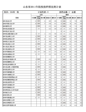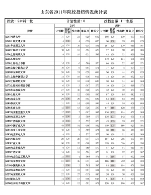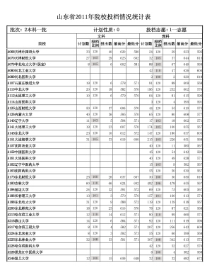 2011年我省文理科一批招生計劃總計50620人,投出考生49692人。其中文科招生計劃8853人,參與一志愿投檔院校172所,投出考生8679人;理科招生計劃41767人,參與一志愿投檔院校204所,投出考生41013人。本科一批藝術類一志愿投出32908人,其中藝術文27286人,參與院校478所;藝術理5622人,參與院校384所。本科一批體育一志愿招生計劃4537人,投出考生4769人,參與院校171所。