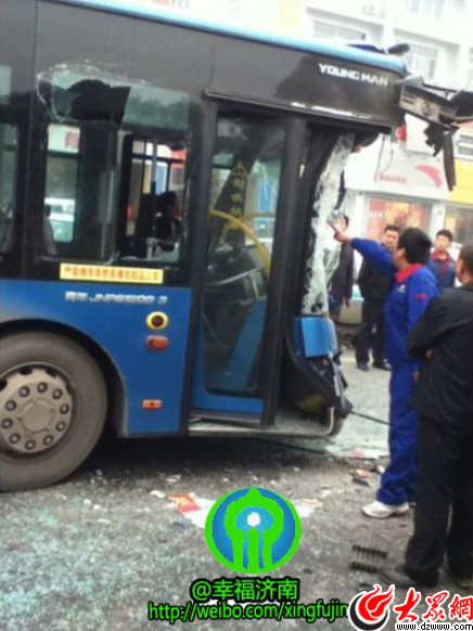 大眾網濟南11月4日訊(記者 韋輝)“濟南brt出車禍了!多人受傷!我們公司也有員工在車上,胳膊被撞斷了。”今天下午1點多,有網友微博爆料,在濟南花園路與山大路交叉口,一輛BRT公交車與普通公交車發生追尾,BRT車頭撞爛,多人受傷。