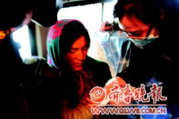 21日,民警對乞討者及其所抱孩童進行血液取樣,以便進行DNA比對。 本報記者 尉偉 攝