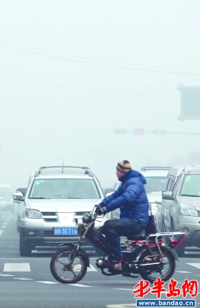 去年12月21日,島城出現(xiàn)霧霾天,街頭能見度很低。記者 陸金星 攝(資料照片)